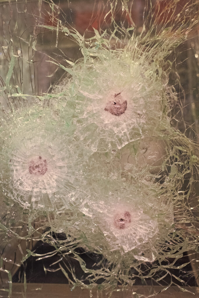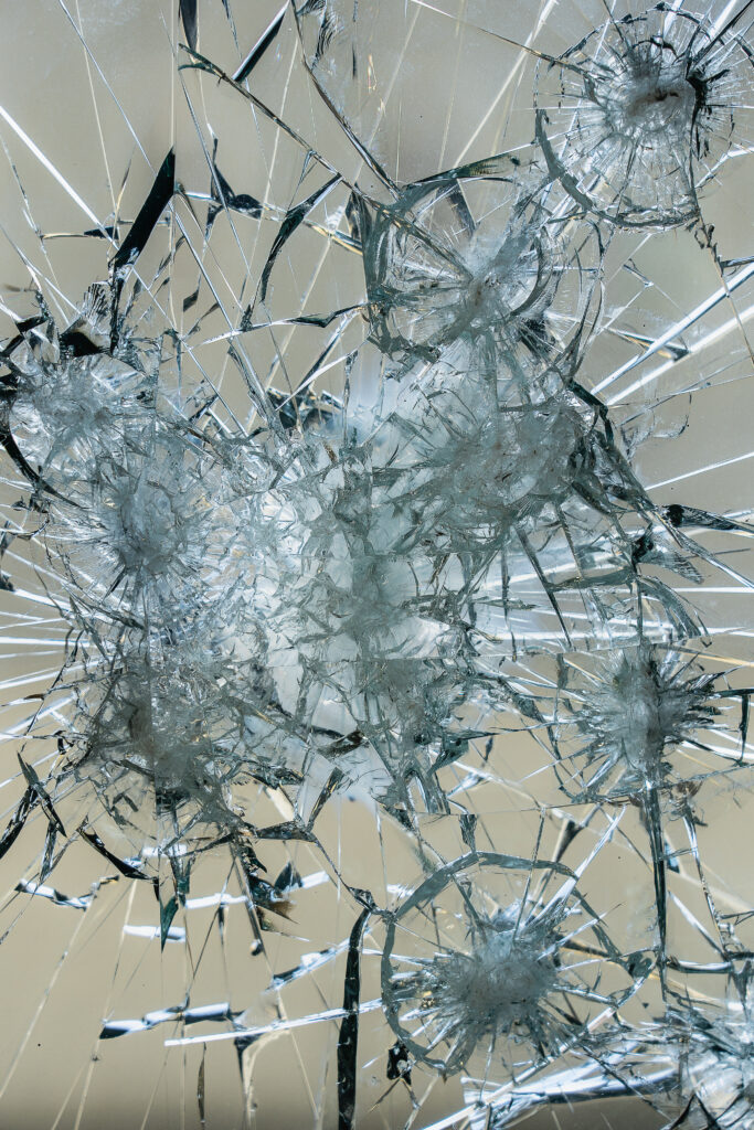 เมื่อกระจกกันกระสุนถูกกระแทกจากกระสุนหรือวัตถุอื่นๆ ชิ้นส่วนที่แตกจะไม่หลุดออกจากกัน ยังคงสภาพเดิมเพียงแต่มีรอยร้าวเกิดขึ้นบนผิวกระจก คุณสมบัติพิเศษนี้ช่วยป้องกันการบาดเจ็บจากเศษกระจกที่อาจกระเด็นเข้าใส่ผู้คนในบริเวณดังกล่าว